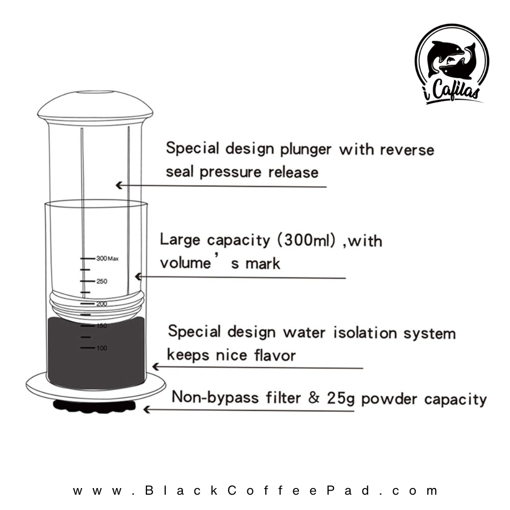 ایروپرس آیکافیلاس گنجایش 0.3 لیتر | iCafilas Travel Aero Press Coffee Makerعنوان
