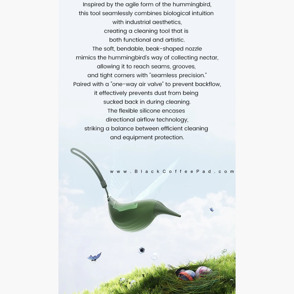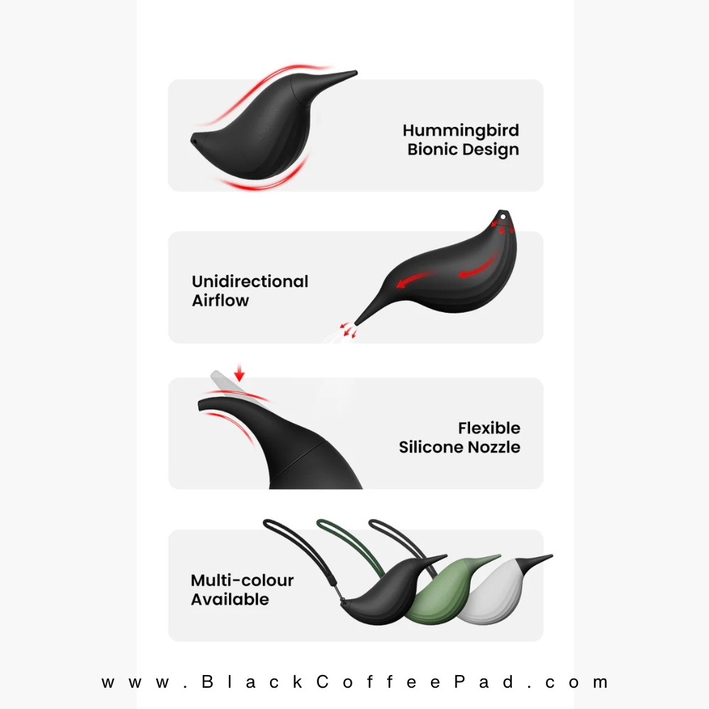 دمنده هوای MHW-3BOMBER مدل Bird Air Blower ابزاری کوچک، ظریف و بسیار کاربردی برای تمیزکاری تجهیزات حساس مانند آسیاب قهوه (Grinder)، دستگاه اسپرسو، فیلترها، دوربین، لپتاپ و دیگر وسایل حساس است.